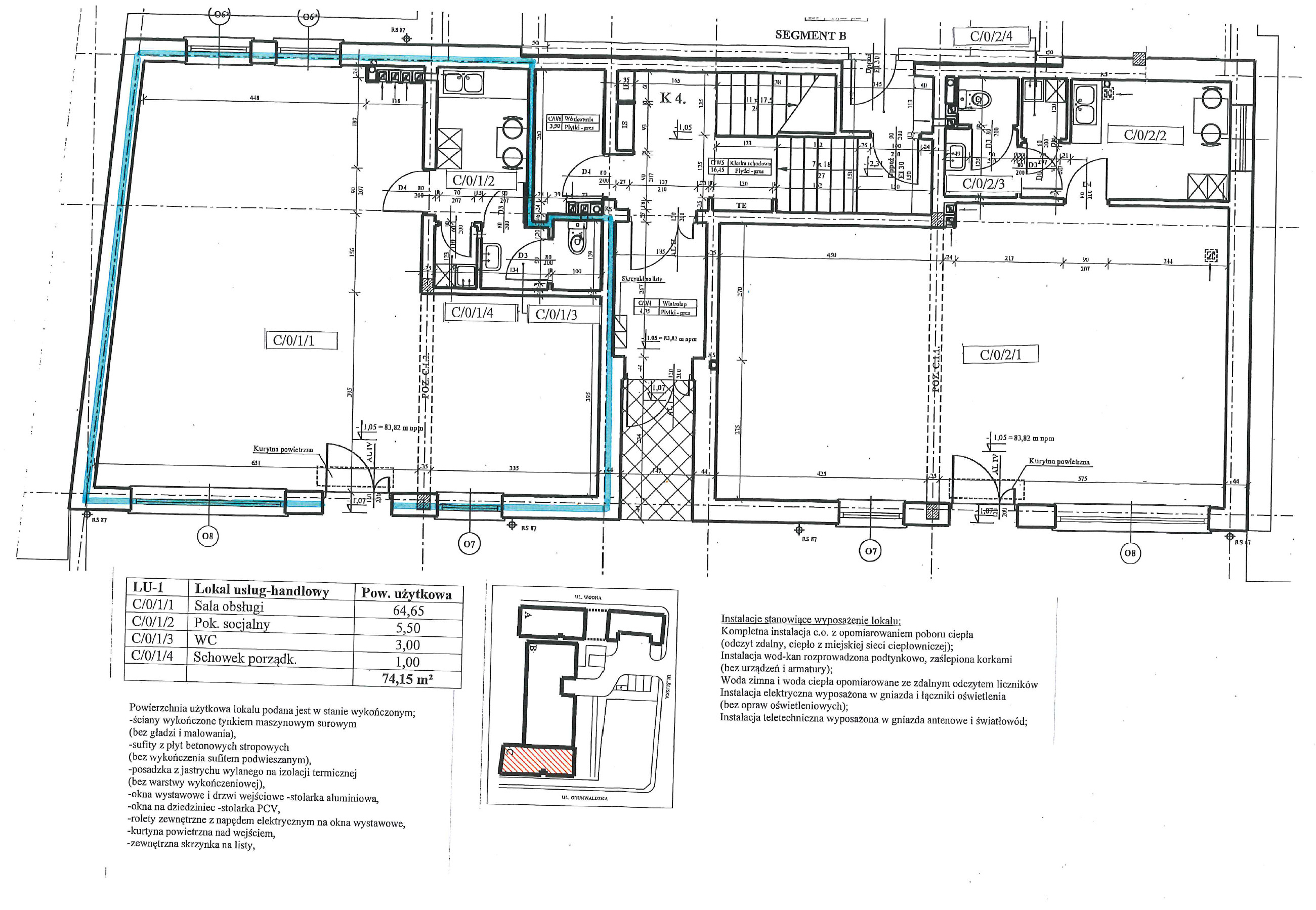 - lokal nr LU-1 – o powierzchni 74,15 m2